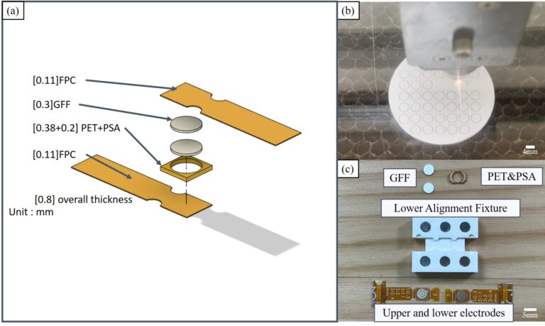 EEOPs的結構包含多層材料:FPC電極、GFF玻璃纖維膜、PI聚醯亞胺膜、PSA壓敏膠、導電層、矽膠覆蓋層。這些層必須精準對位,否則會影響電滲透效果。