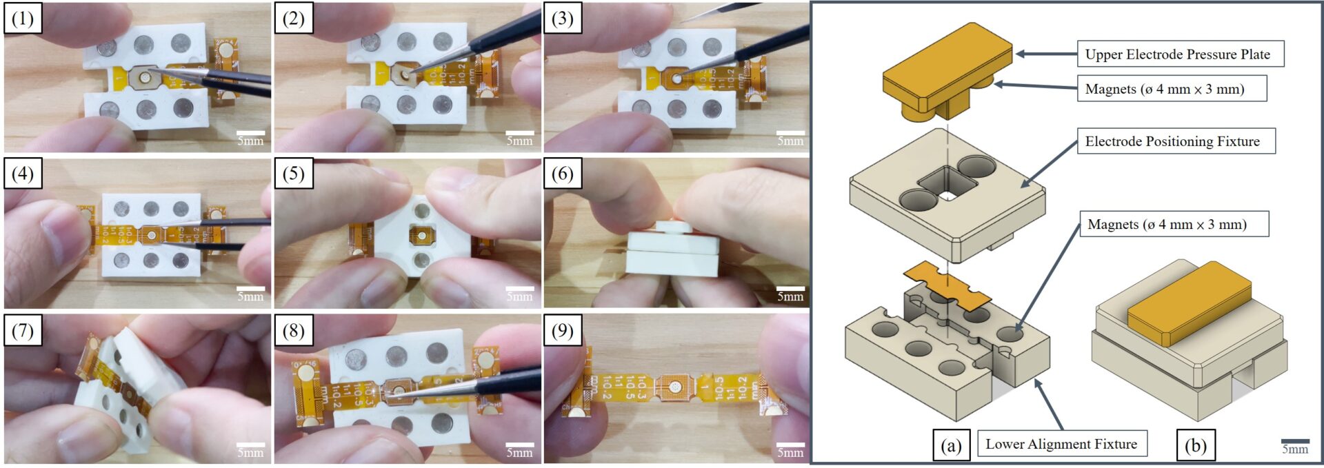 The magnets don’t just hold things in place – more importantly, they provide uniform clamping force. Every time you assemble, the magnets apply the same pressure, ensuring tight bonding between the PSA adhesive layer and the electrodes. This standardized process solved the deviation problems of manual assembly, allowing each EEOP unit to maintain consistent performance.